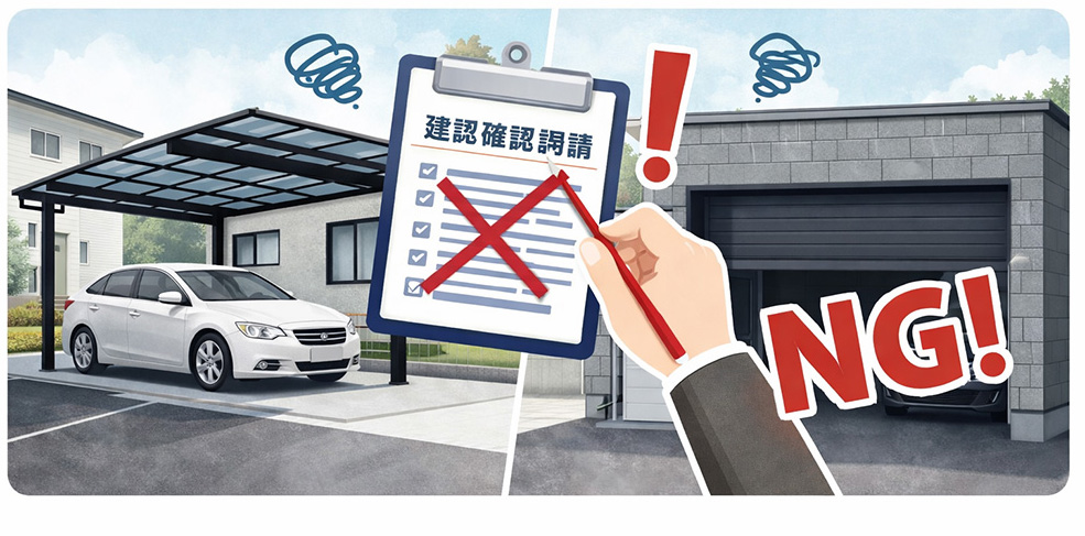 カーポートやガレージは、「簡単に設置できるもの」と思われがちですが、条件によっては建築確認申請が必要になります。