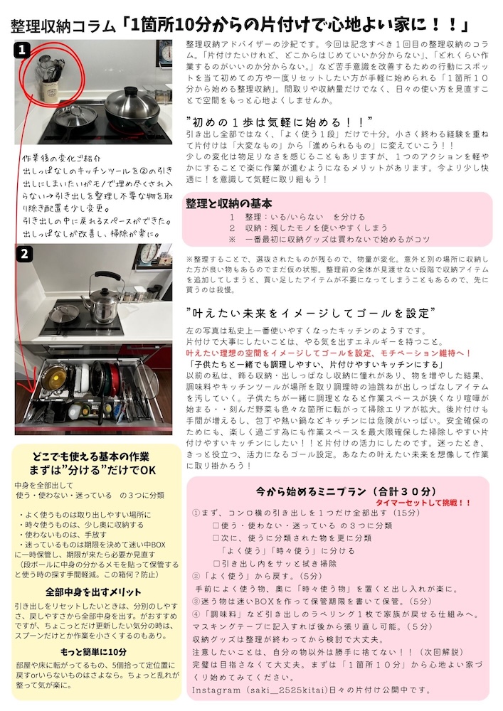 今回は、初めての方でも気軽に取り組める“1箇所10分”から始める片付けの考え方についてご紹介します。